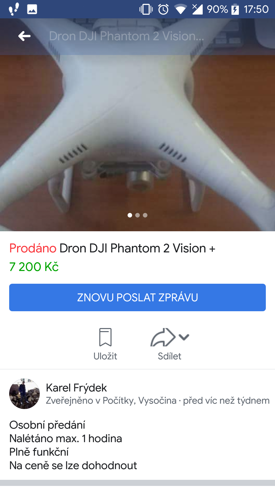 Pekný deň. Chcel by som sa opýtať pár veci. Kupoval som dron v hodnote 7000 korún cez inzertnu stránku. Podľa inzerátu bol dron v poriadku plne funkčný údajne mal nalietane 1hodinu. Pri prevzatí som urobil chybu že som sa len pozrel do krabice či je všetko komplet ako má byť. Následne som zistil že dron má nefunkčnú kameru a zrejme je po páde pretože bol dosť poodierany. Následne sa mi predávajúci "priznal" že dron opravoval jeho otec každopádne po jednej hodine letu by asi nebolo čo opravovať.dron v takomto stave sa predáva za 3000 korún tak som požadoval vrátenie peňazí alebo dorovnanie rozdielu no pán už nekomunikuje. Mam jeho číslo účtu, mobilne číslo a aj meno. Chcel by som podať trestné oznámenie za podvod kedze dron nebol ani z ďaleká v stave aký bol udavany. Je nejaká šanca že sa k peniazom dostanem?