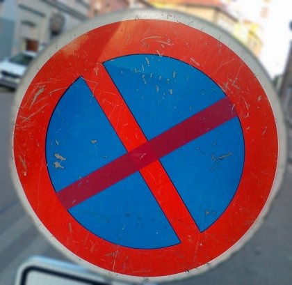 b) vyjadřuje zákaz stání