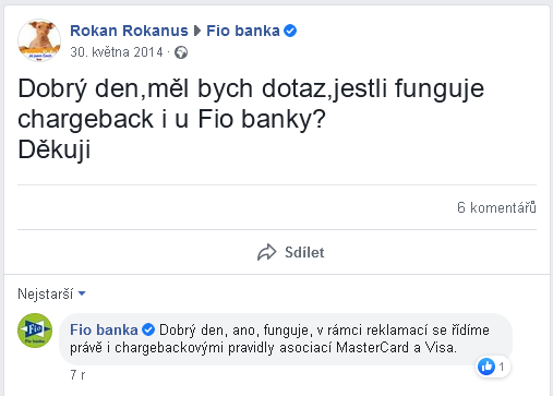 Dotaz - jaká je šance například pomocí chargeback, že jí banka peníze vrátí? Je u fio banky.