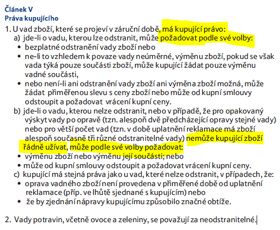 Všimni si o ovšem, že ve všech pasážích (vyjma odstoupení od smlouvy) používají termíny: "může požadovat", "může žádat". To, že něco můžeš žádat nebo požadovat neznamená v žádném případě to, že ti prodejce musí vyhovět... Výroková logika se vyučuje už na ZŠ.